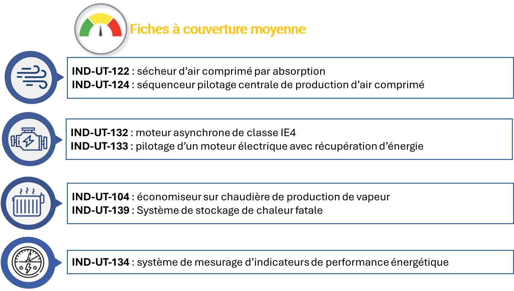 Nous avons classé les principales fiches CEE utilisées dans l’industrie en trois catégories :